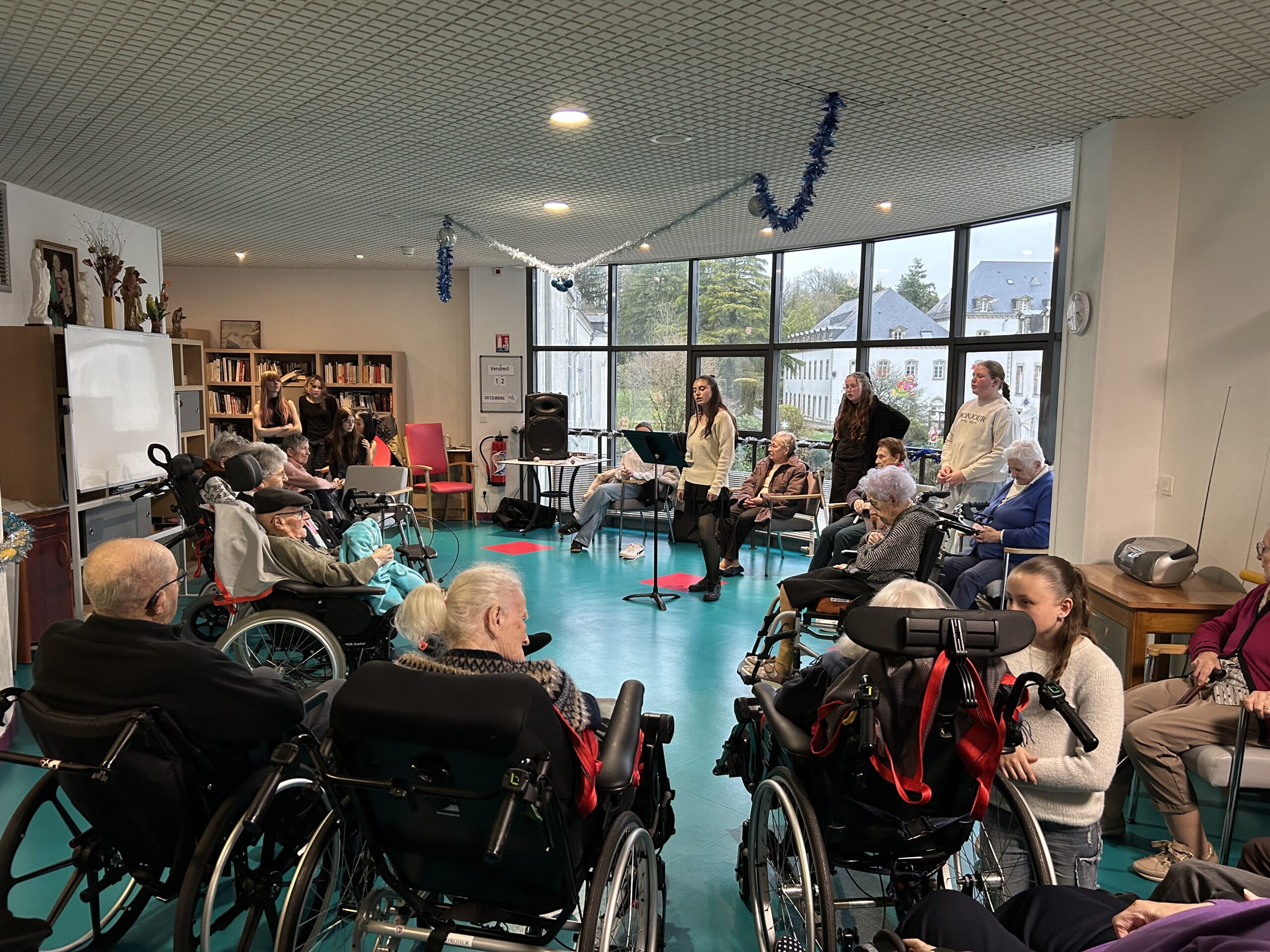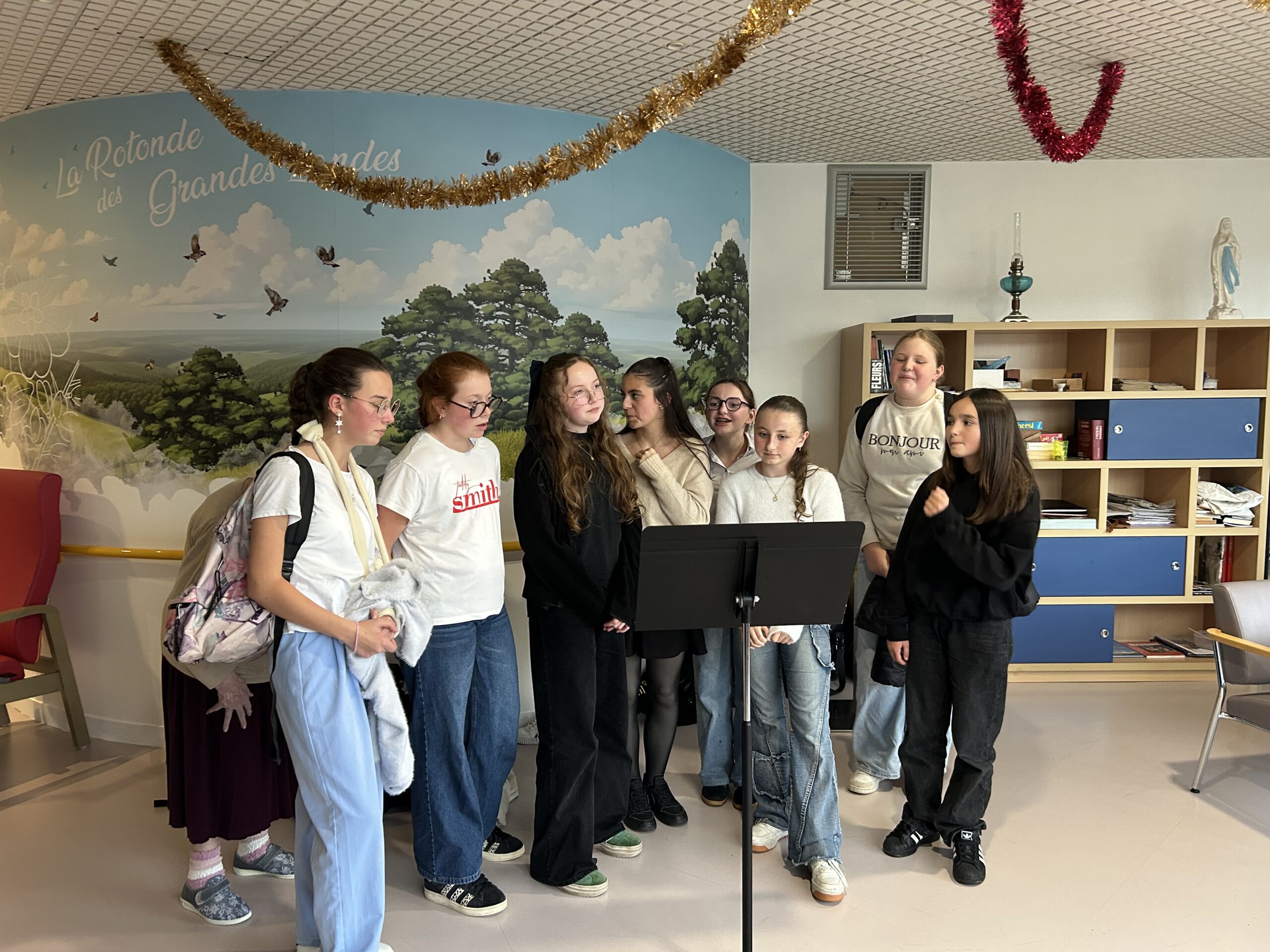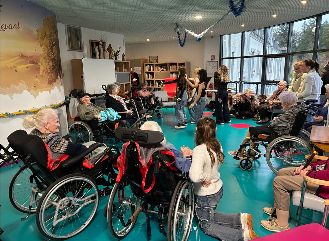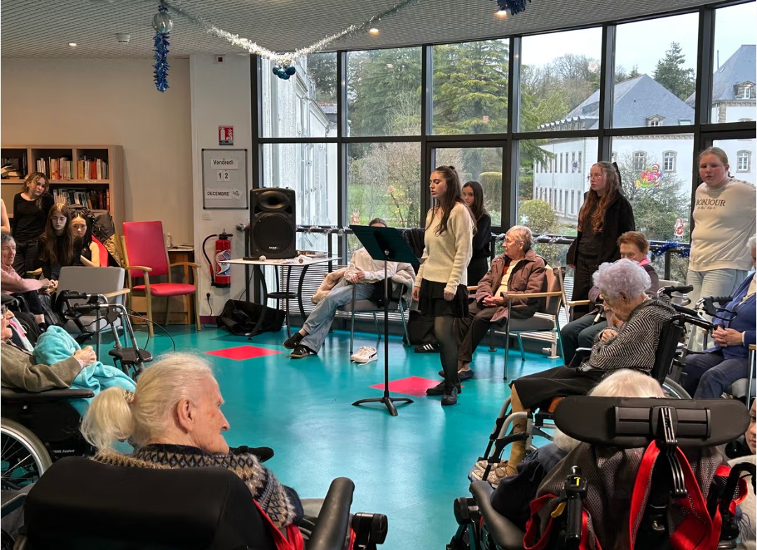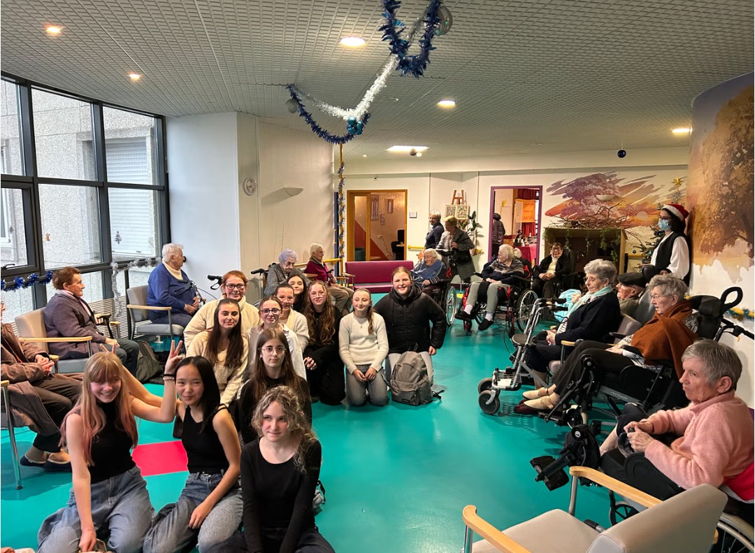 Nos élèves ont activement participé à cet événement : ils ont aidé à la préparation des biscuits, à l’installation et à la tenue des stands, et ont également chanté pour les résidents.