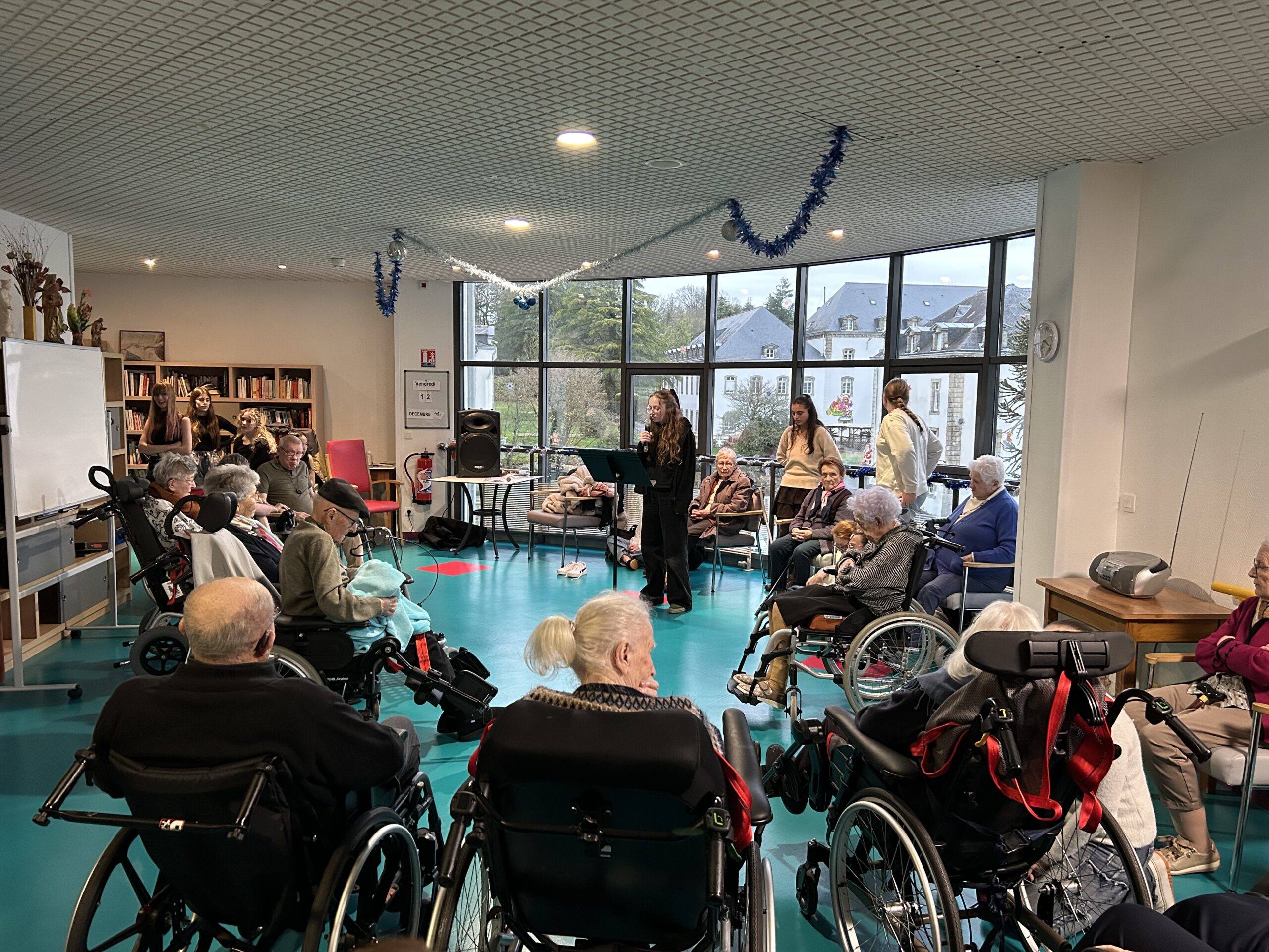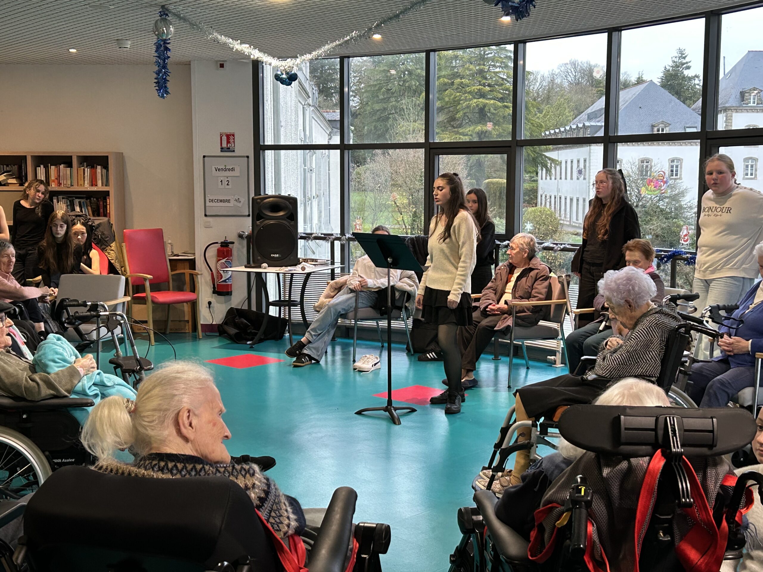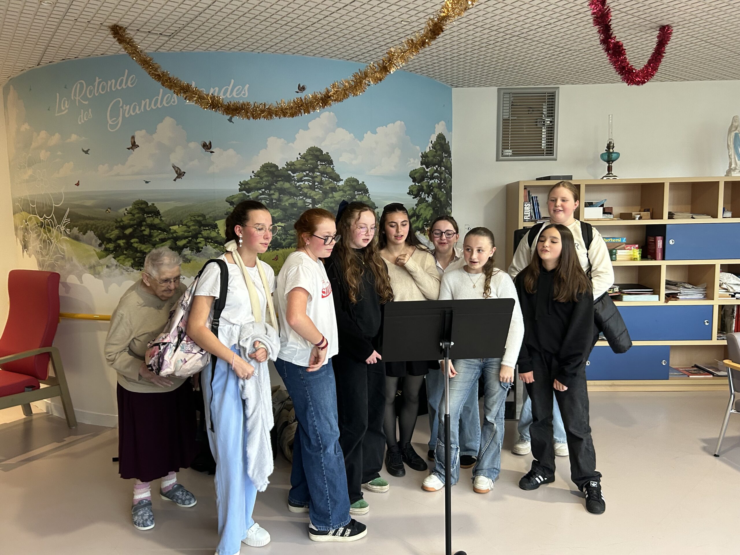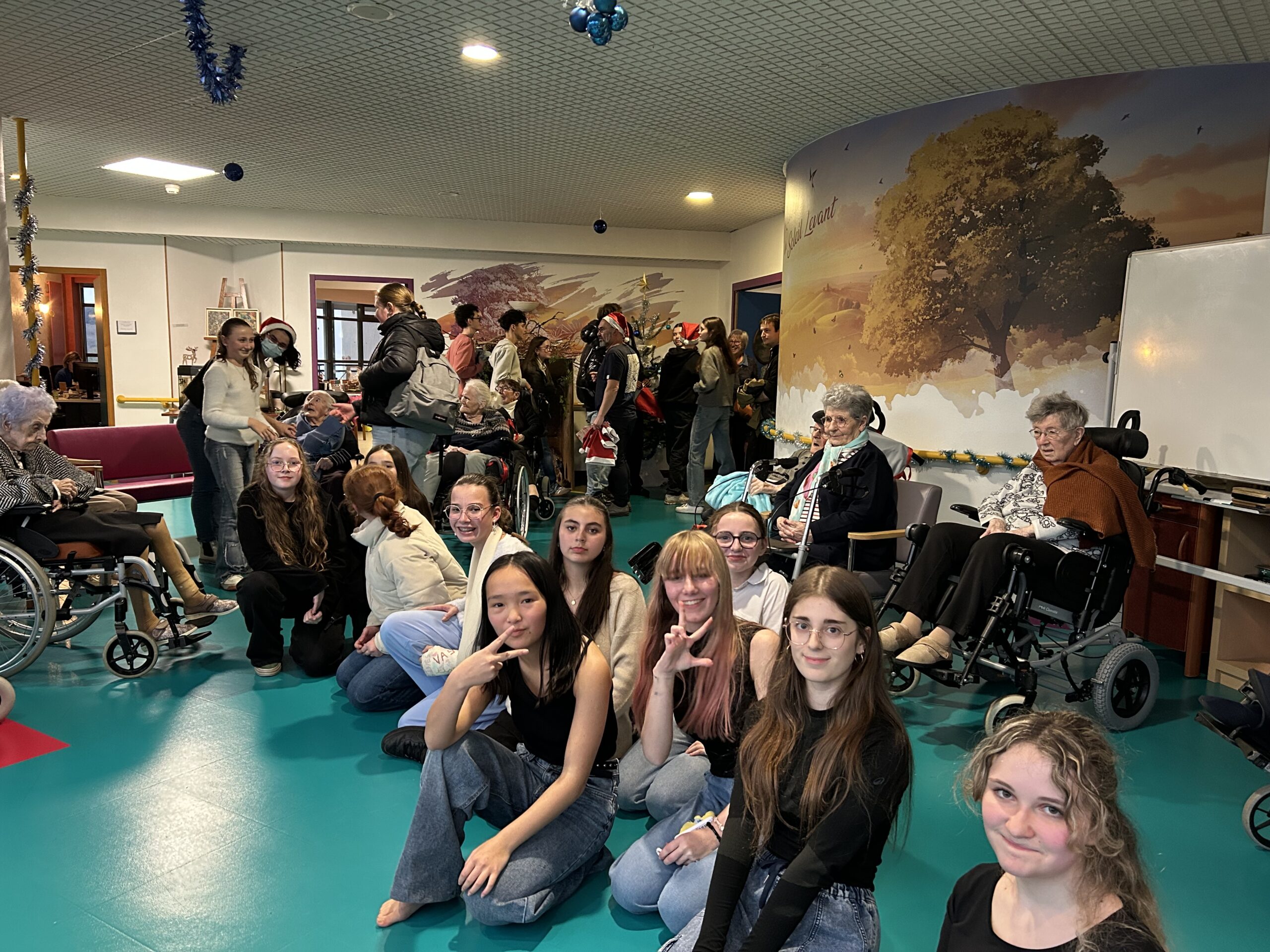 Nos élèves ont activement participé à cet événement : ils ont aidé à la préparation des biscuits, à l’installation et à la tenue des stands, et ont également chanté pour les résidents.