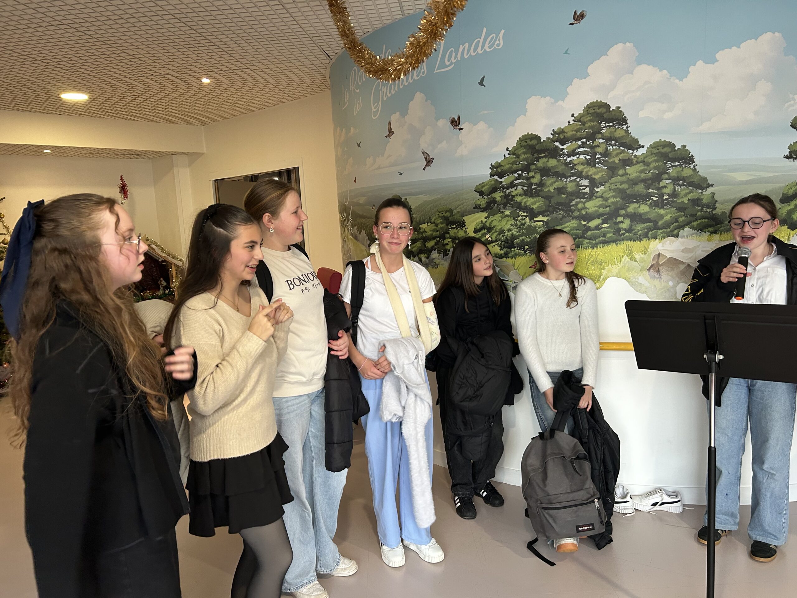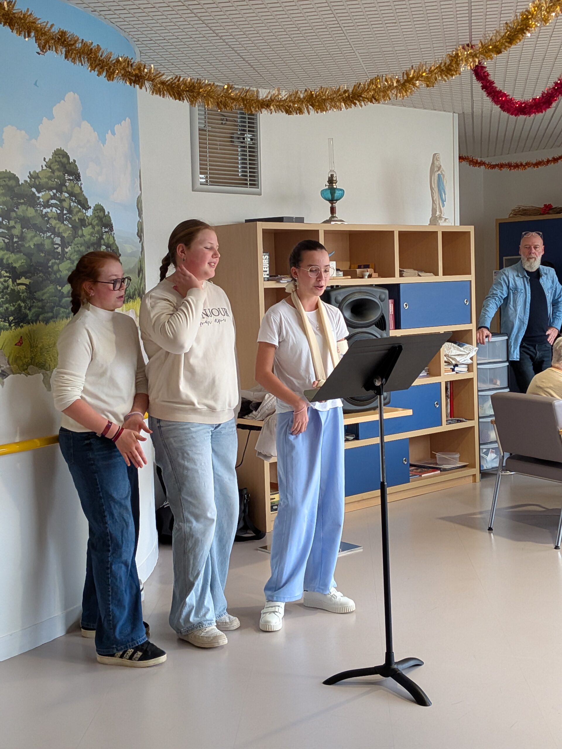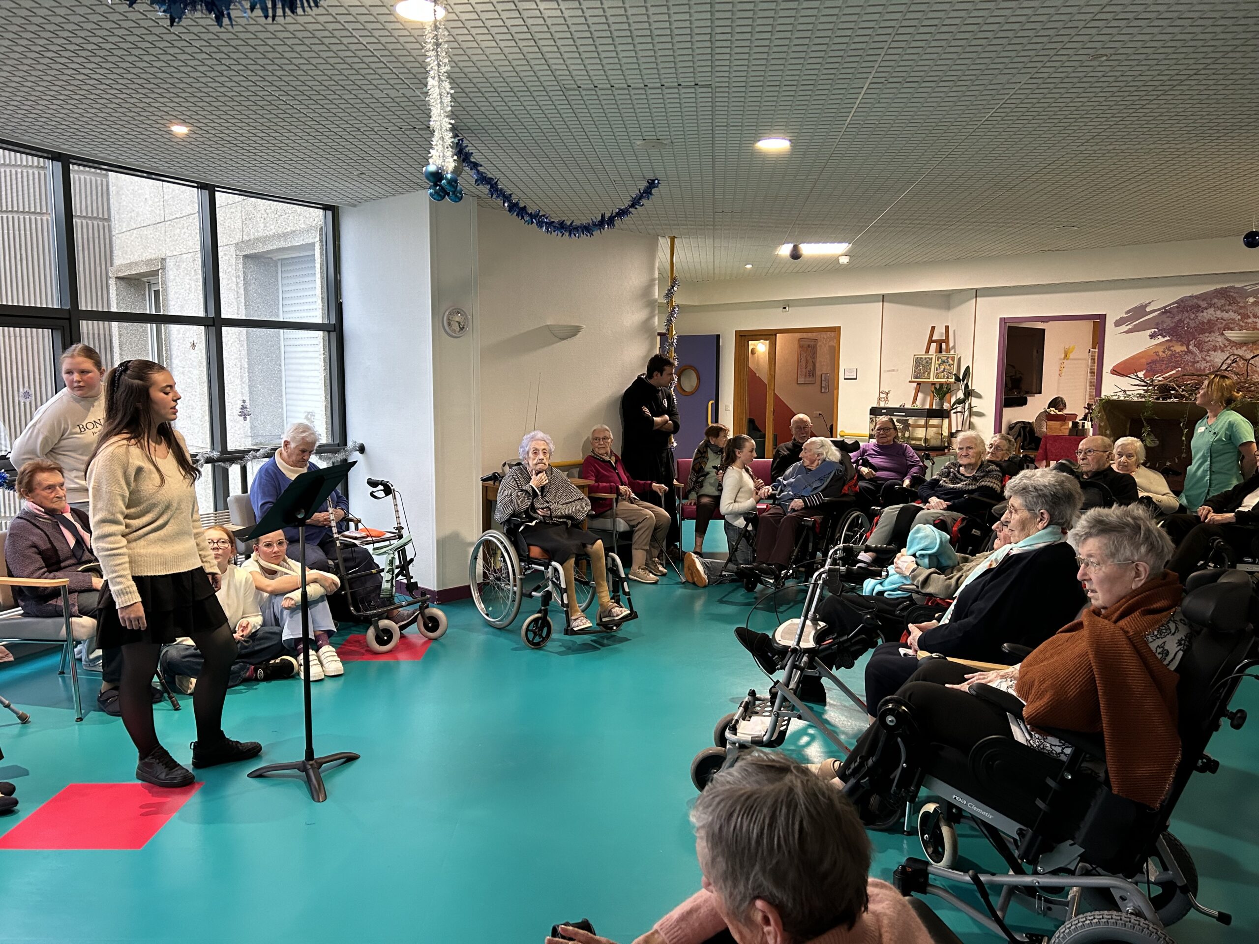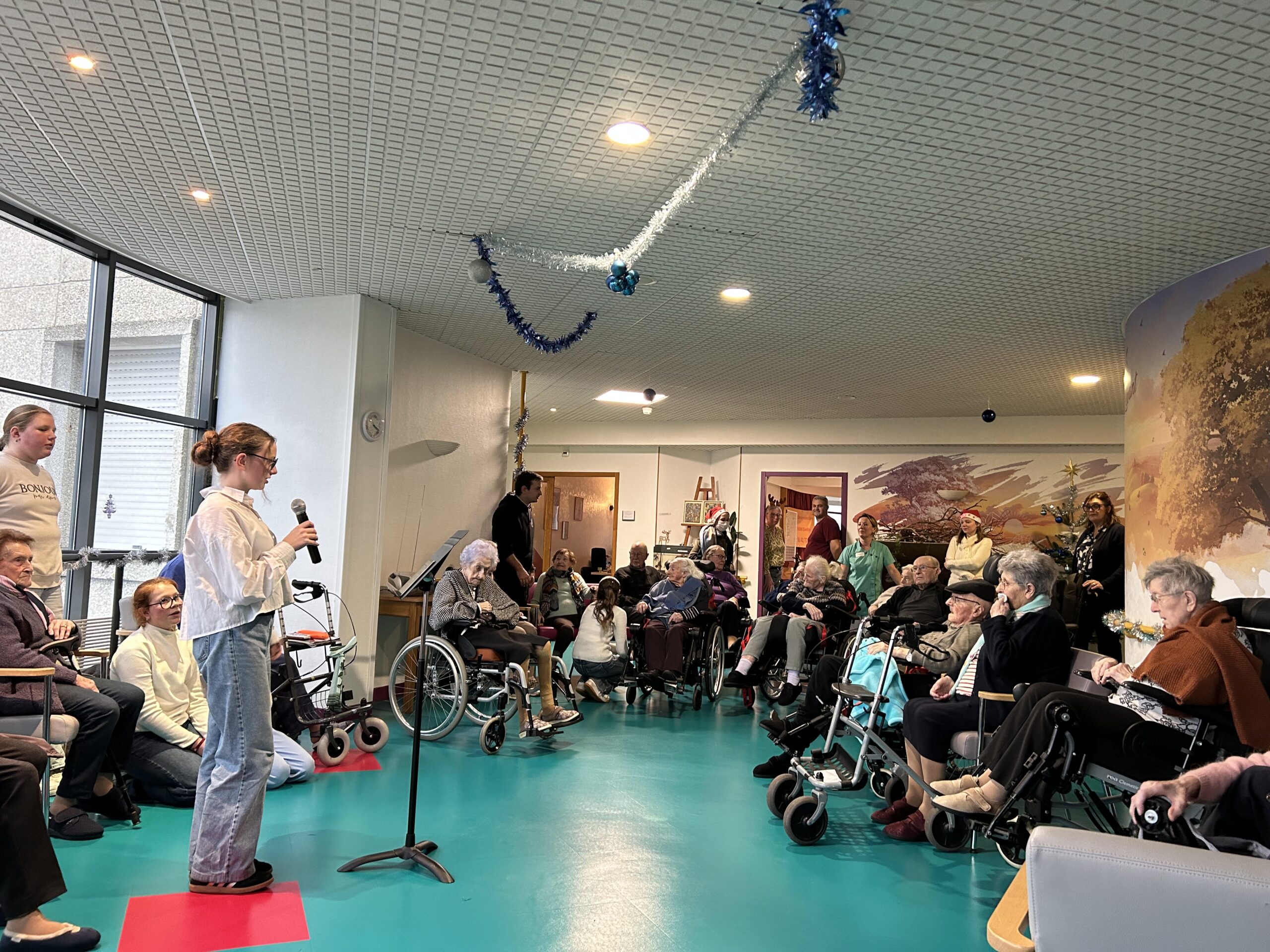 Nos élèves ont activement participé à cet événement : ils ont aidé à la préparation des biscuits, à l’installation et à la tenue des stands, et ont également chanté pour les résidents.