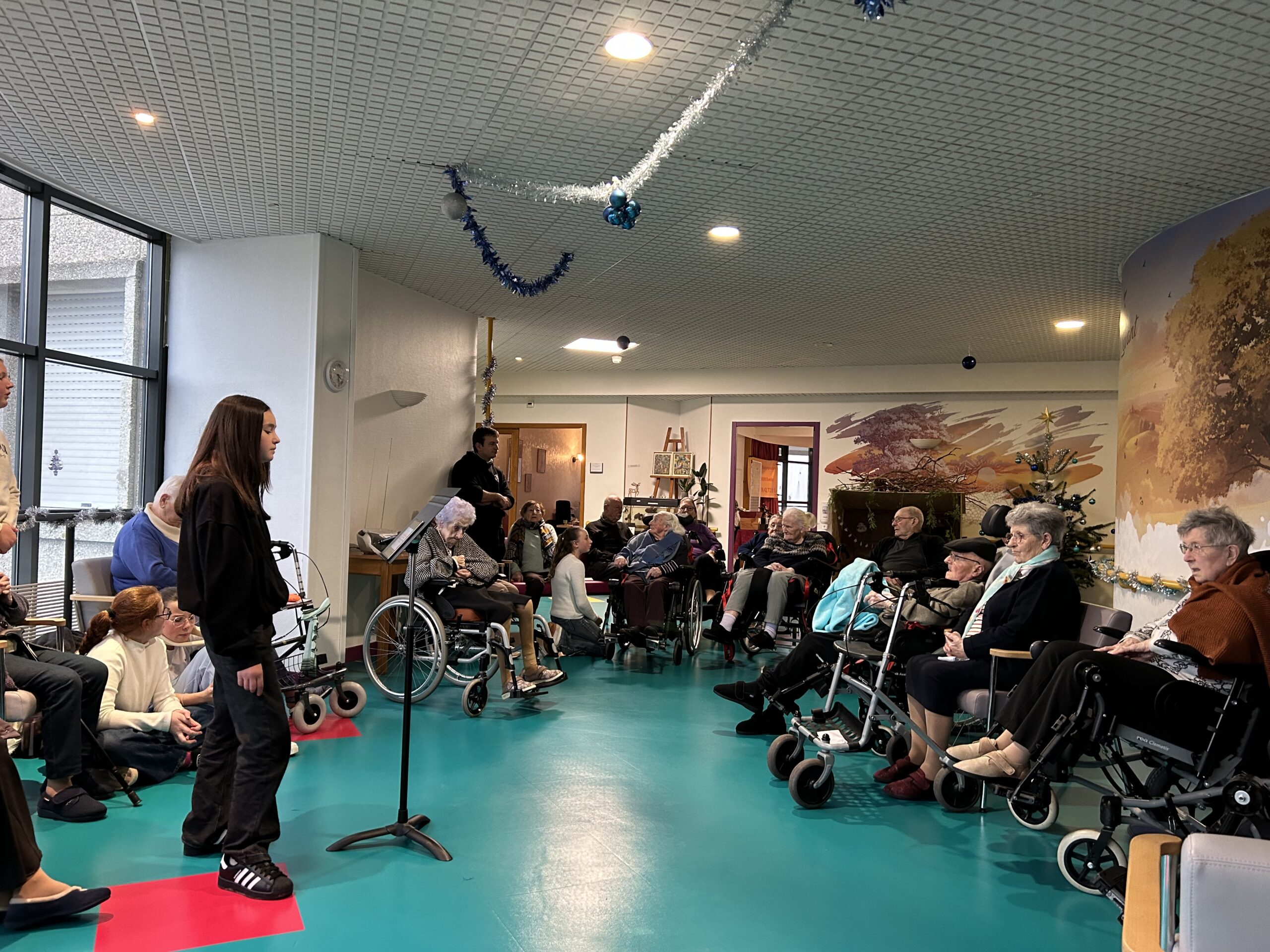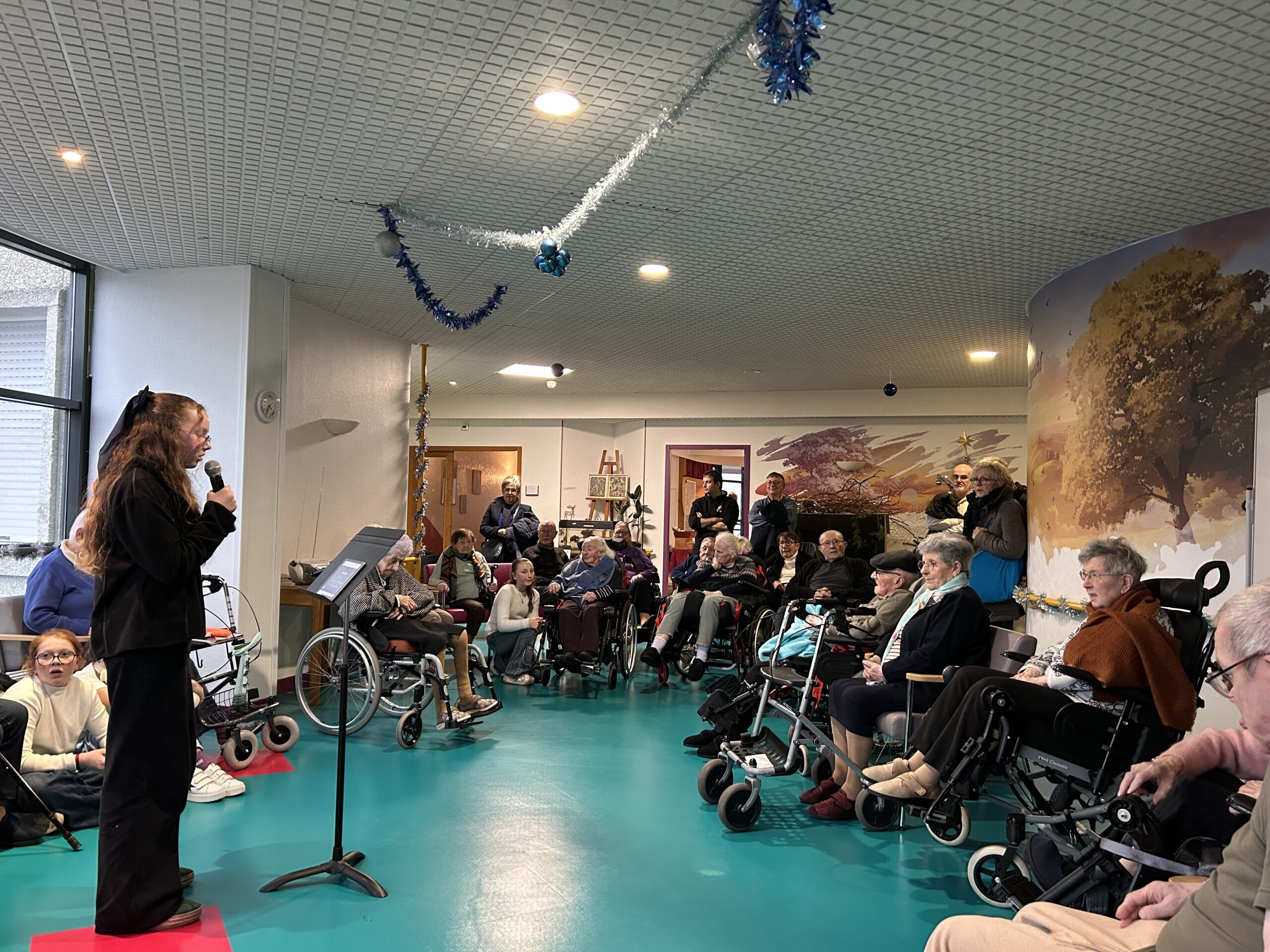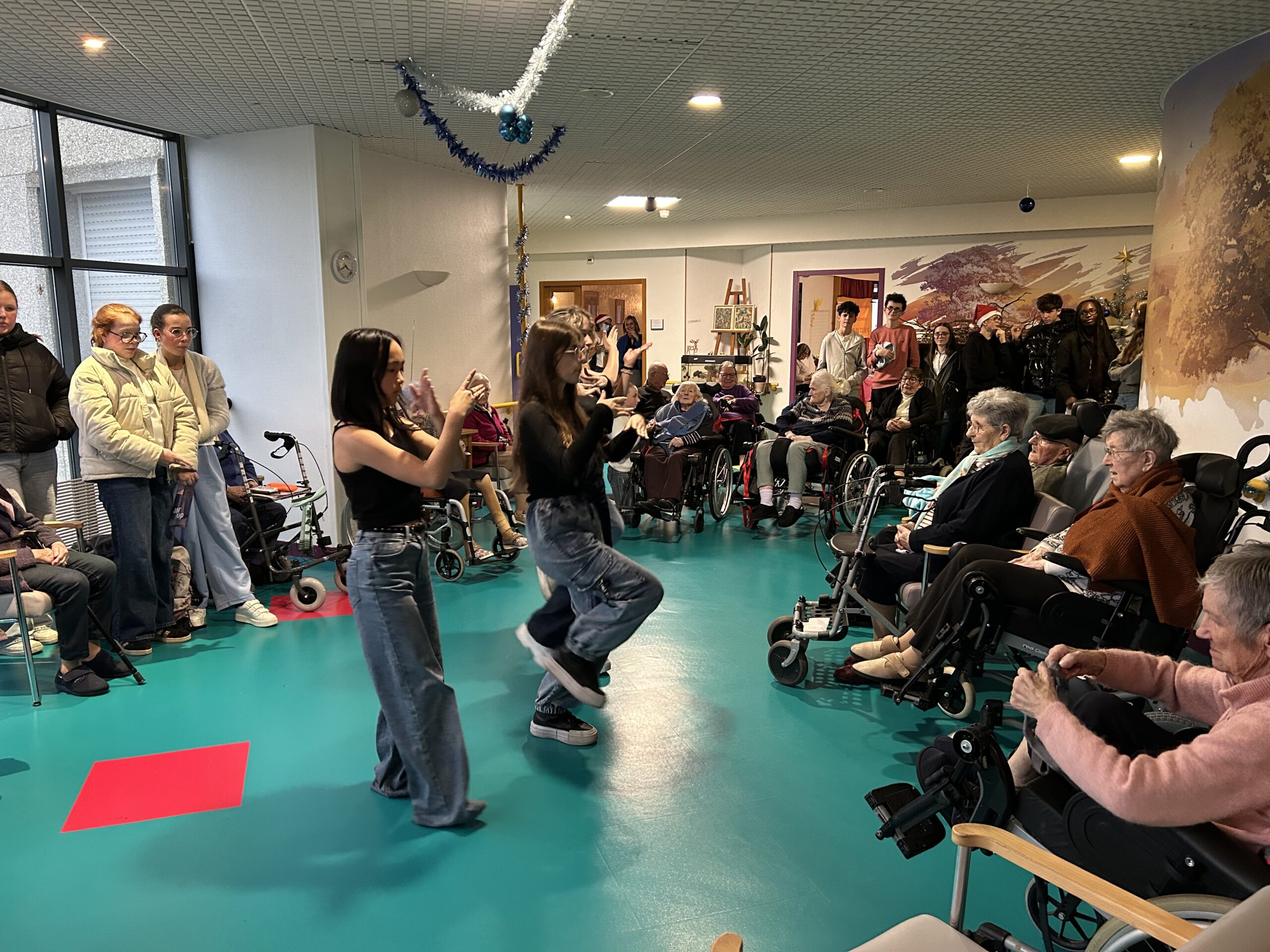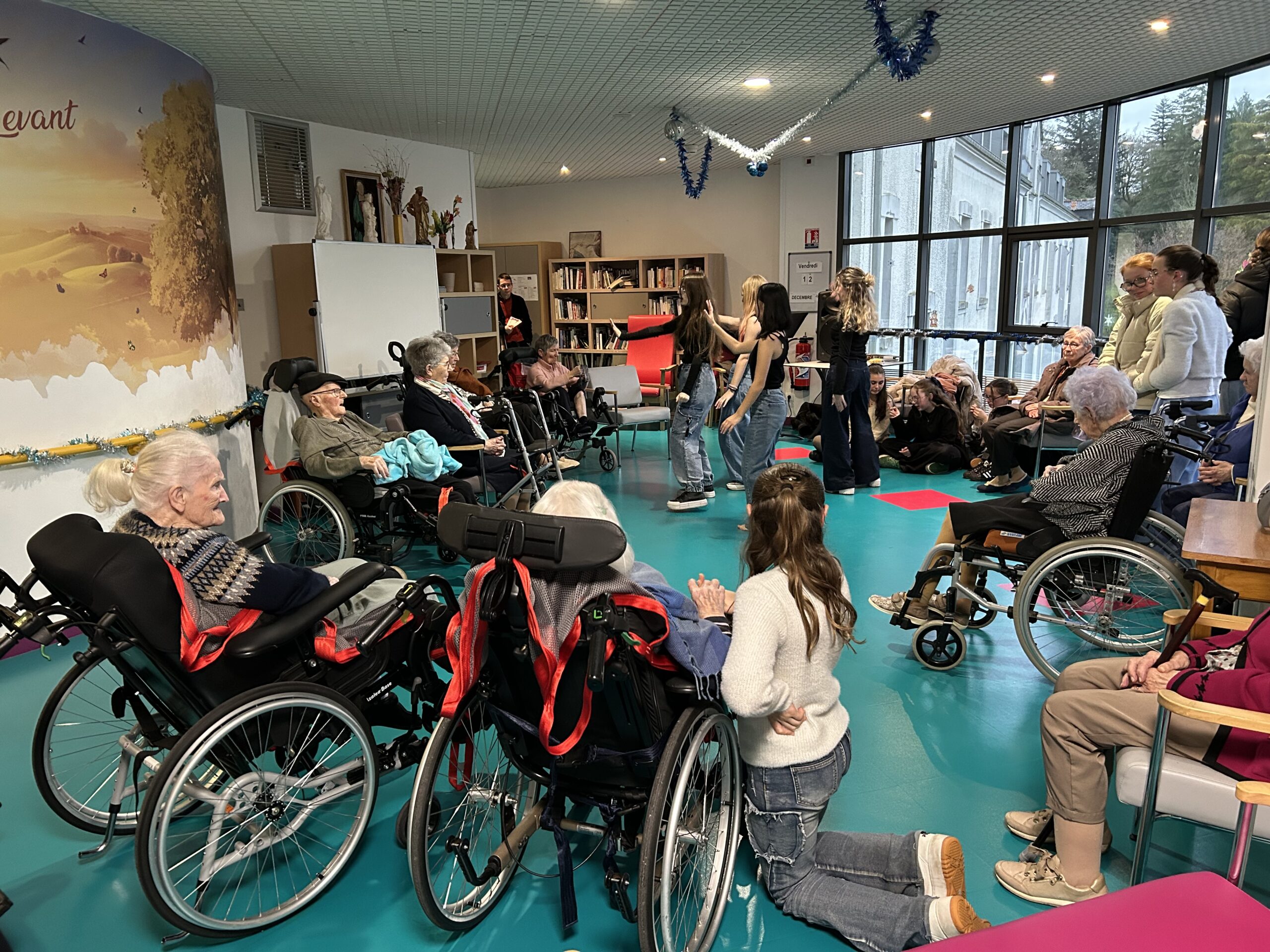 Nos élèves ont activement participé à cet événement : ils ont aidé à la préparation des biscuits, à l’installation et à la tenue des stands, et ont également chanté pour les résidents.