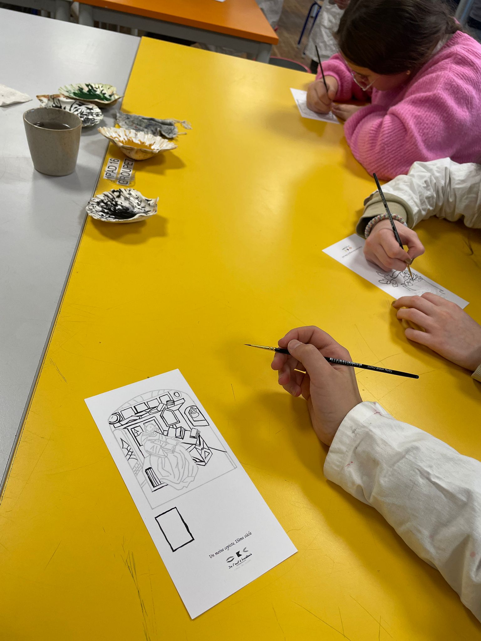Lundi 26 et mardi 27 janvier, les élèves de 5e ont participé à un atelier d’enluminure.